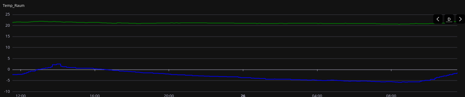 Die tiefste Temperatur Außen war 4,4 °C, im Wohnzimmer 20,4.Die eingestellte Zieltemperatur ist 21 °C, aber ich habe in der App den Sparmodus eingestellt, demnach sind Abweichungen ja gestattet.Ich finde die Abweichung aber mehr als akzeptabel, ein sehr guter Wert.